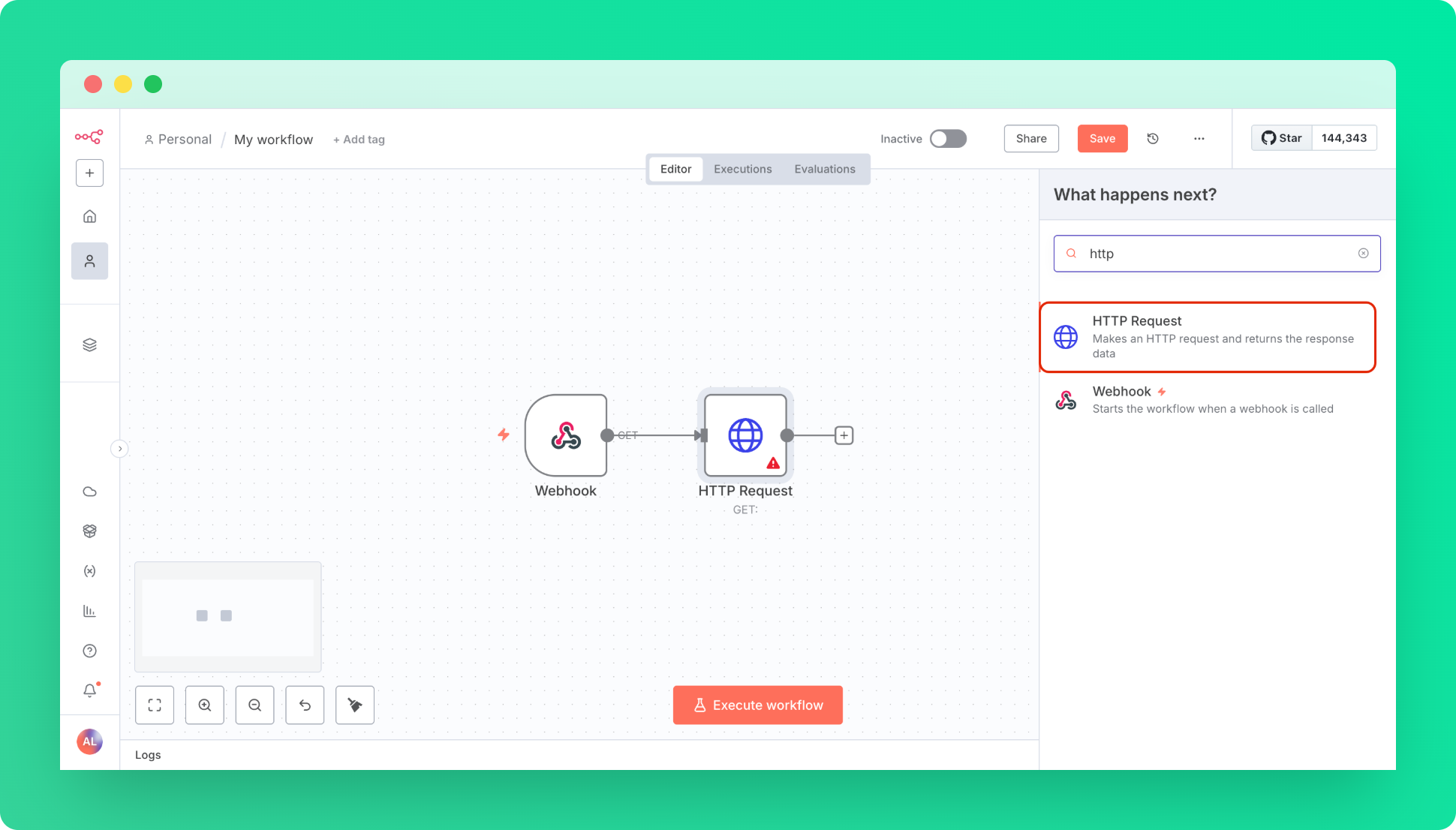 3. Create a HTTP Request Node